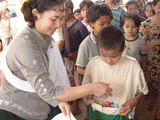 しかし、それを見た子ども達は、それまで行儀よく並んで待っていたのに、彼女に群がり、服を引っ張り数少ない物を取り合って混乱になりました。私達は、子ども達や村の人の目の前で、激しく彼女に注意しました。子ども達もびっくりして静まりました。少し厳しかったかもしれませんが、彼女にも、村の人々にも必要なことでした。