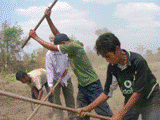 2005年1月現在、農地に住みたいと望む14歳以上の5人の子ども達、3名のカンボジア人スタッフに、ダニエルを加えて9名が農地へ引っ越しています。そして今、新たに3人の子ども達が希望をしています。現在、毎週末には、20名までの子ども達が、変わり交代に農地へ農業体験に向かっています。みんな、農地の手伝いを楽しんでいるのでしょう。